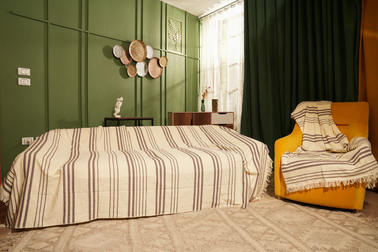 مش مجرد مفرش عادي، ده قطعة مميزة قطن ١٠٠٪ بخامة ناعمة ونسيج بارز تضيف لمسة شيك لبيتك. ألوانه ثابتة، وتصميمه متقن، وينفع لكل الأوقات والمناسبات