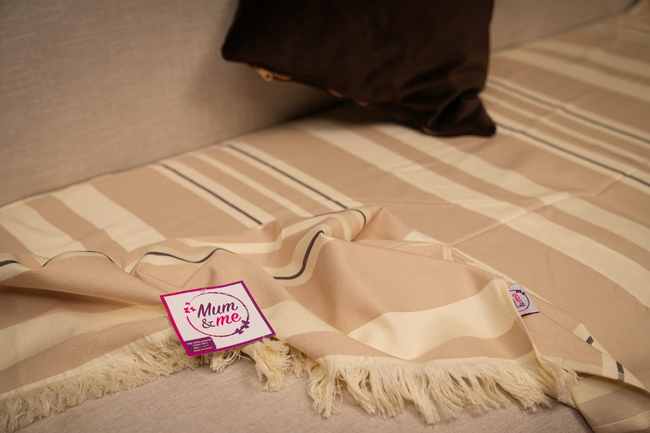 Luxury Cover - المقاس الأصغر- اللون مقلم درجة بيج في كريم وخط رفيع بني