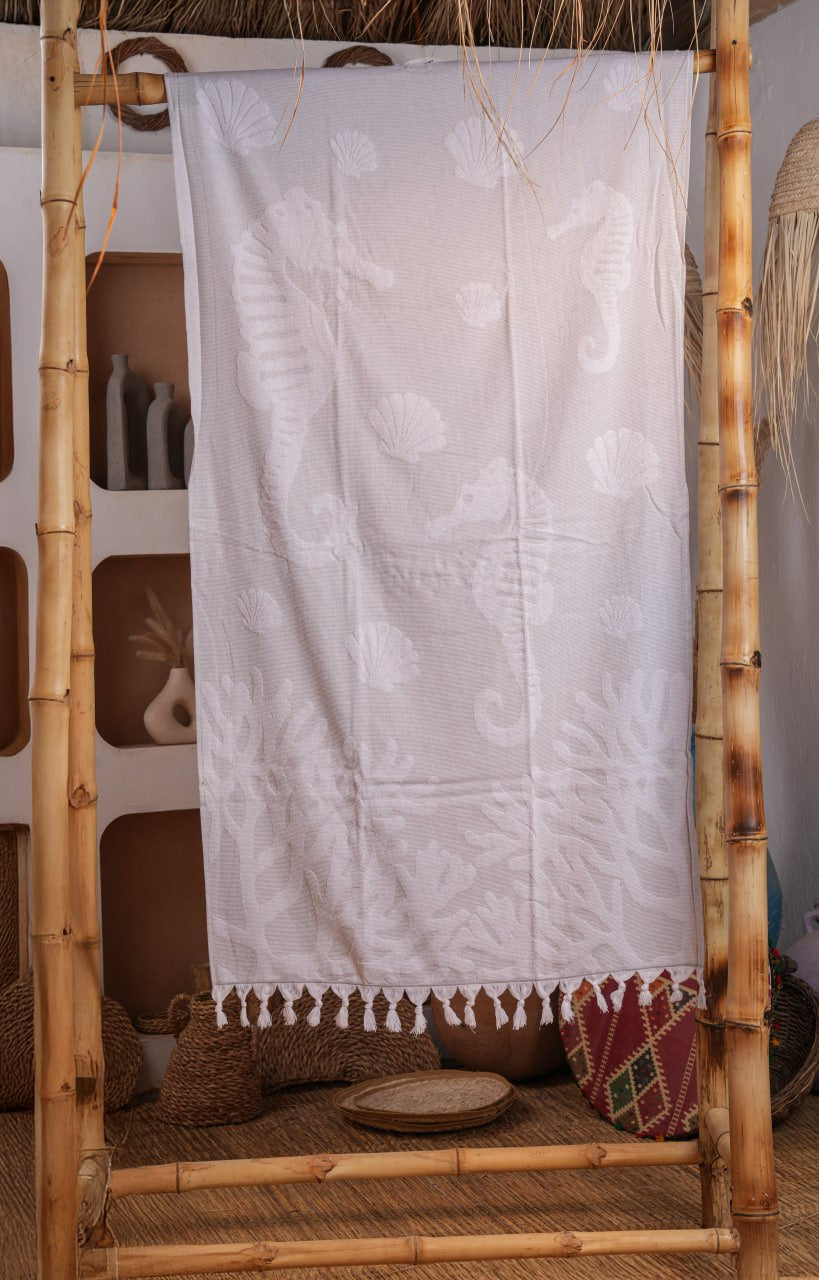 مش مجرد مفرش عادي، ده قطعة مميزة قطن ١٠٠٪ بخامة ناعمة ونسيج بارز تضيف لمسة شيك لبيتك. ألوانه ثابتة، وتصميمه متقن، وينفع لكل الأوقات والمناسبات، وكمان ينفع كبشكير يتفرش في المصايف.