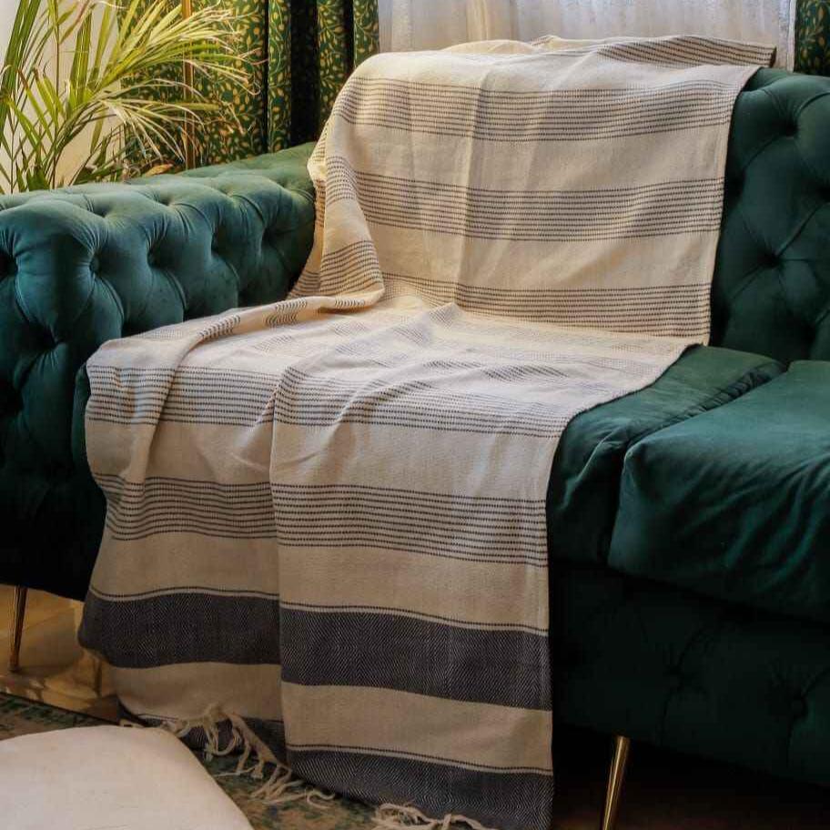 Flow Cover - اللون البيج مخطط باللون الجراي بطول المفرش
